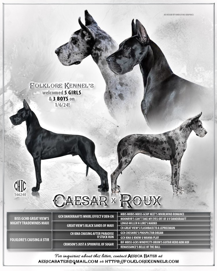 Breeding to Caesar is something that I’ve dreamed of since I saw the very first Facebook post of him. Since that time, he has consistently proven himself in the ring garnering multiple BISS wins, AOM at Westminster, AOM at GDCA National and is now proving himself as a noteworthy sire.